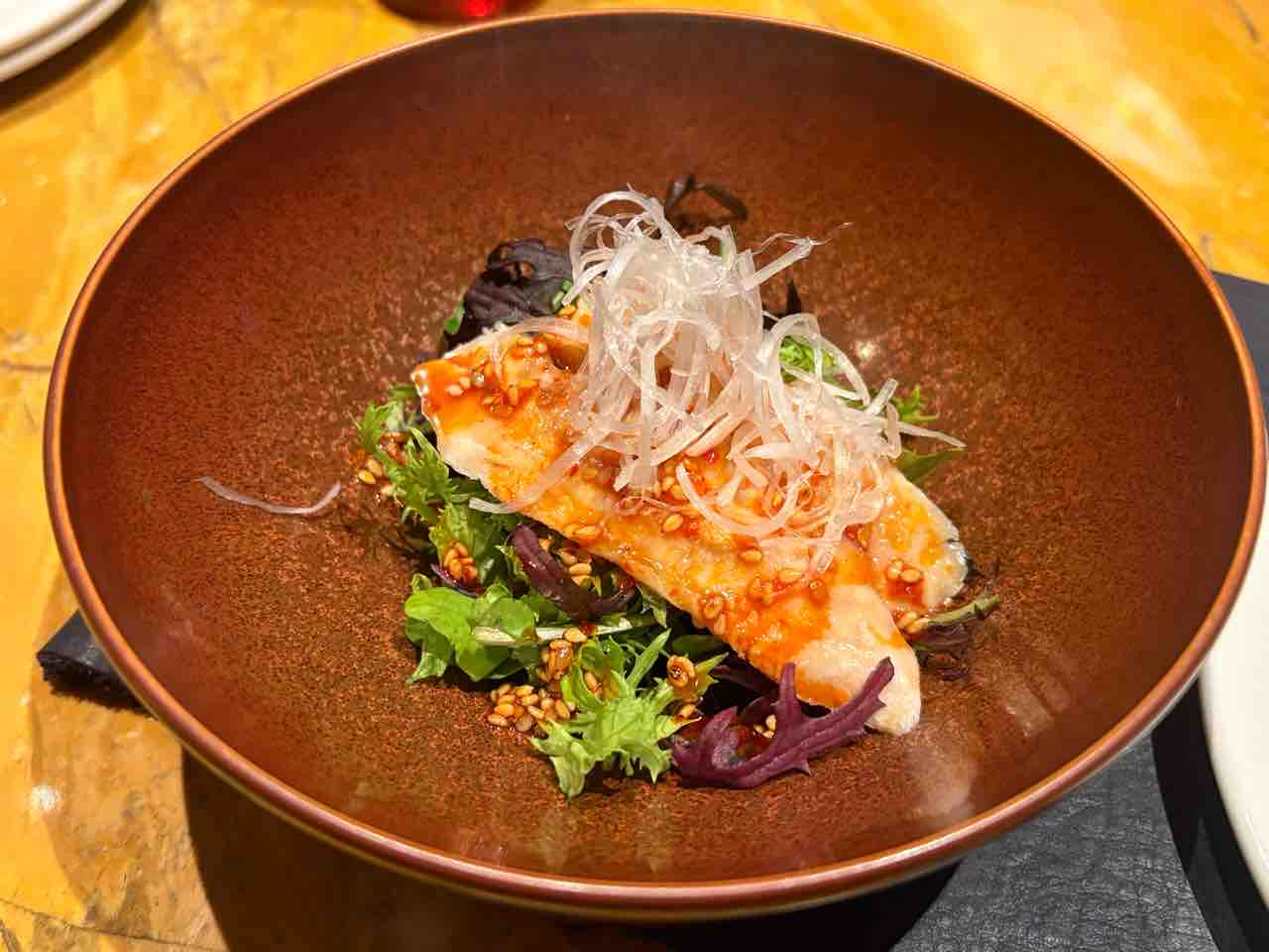 トラフグの皮のサラダ 海キャビア